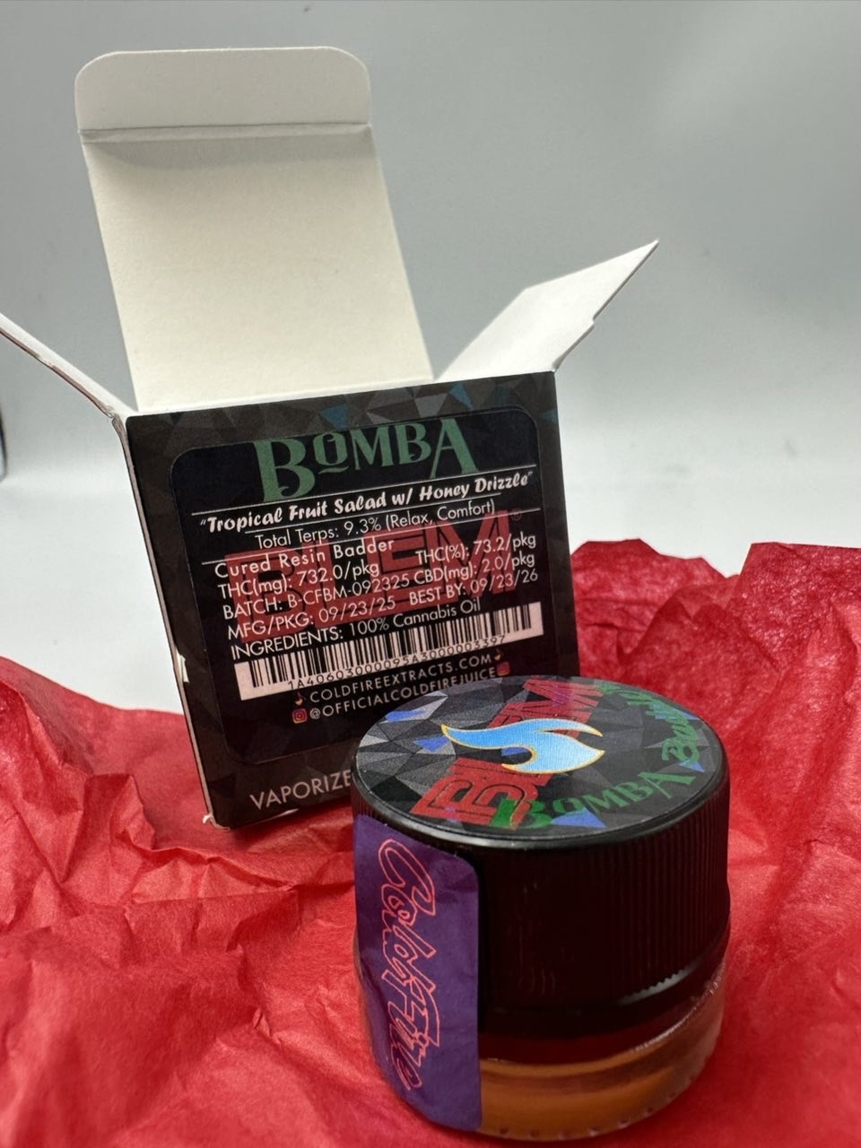 Cold Fire Exclusive Live Rosin is packaged in airtight containers designed to protect against light, air, and moisture loss. This helps maintain potency, aroma, and texture.