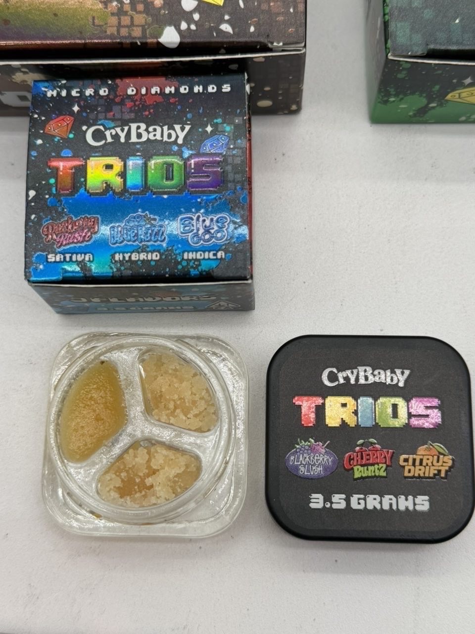 Compared to shatter, badder, or crumble, micro diamonds offer significantly higher potency and cleaner cannabinoid concentration. While other concentrates may focus on texture or flavor alone, Crybaby Trios Micro Diamonds delivers intensity with added terpene depth.